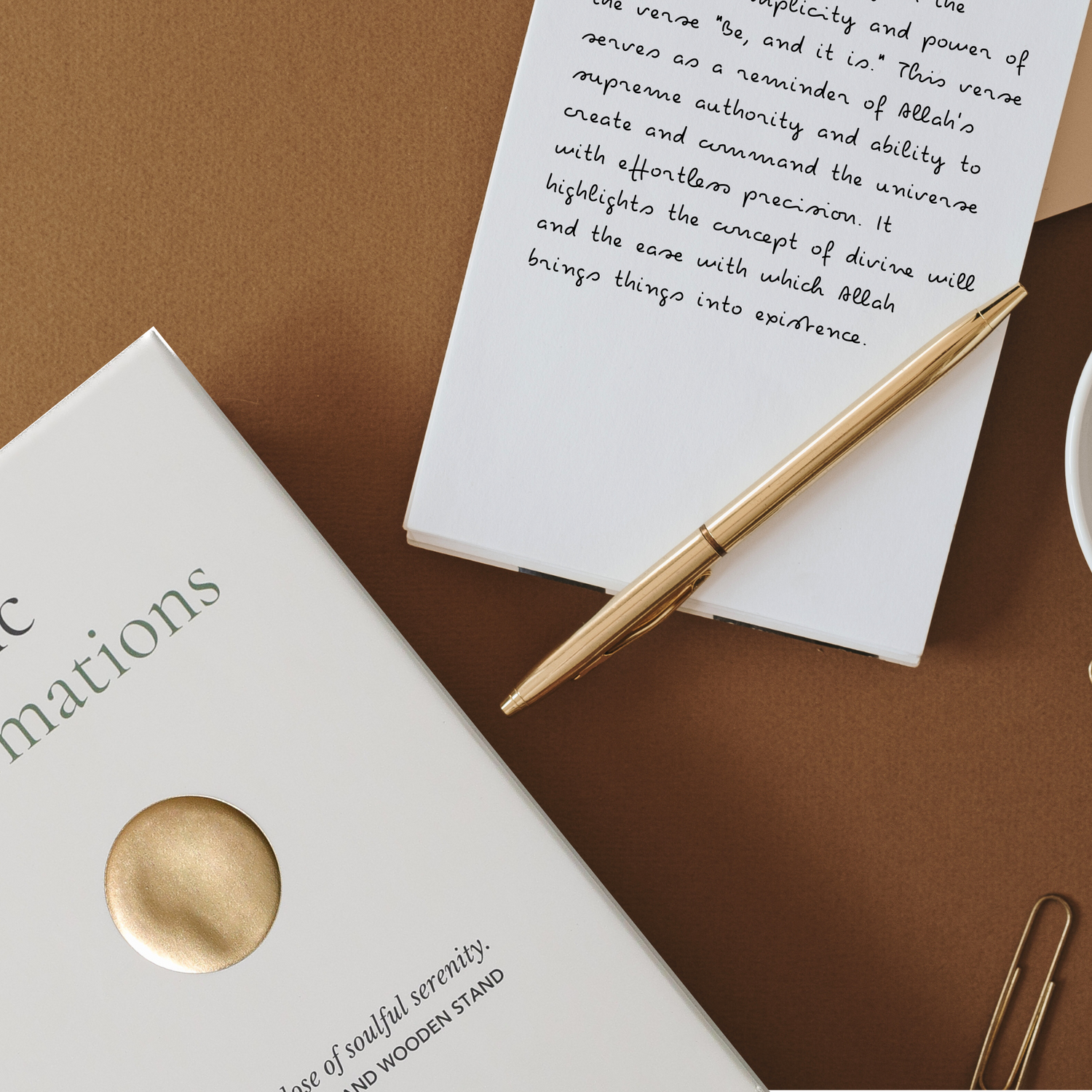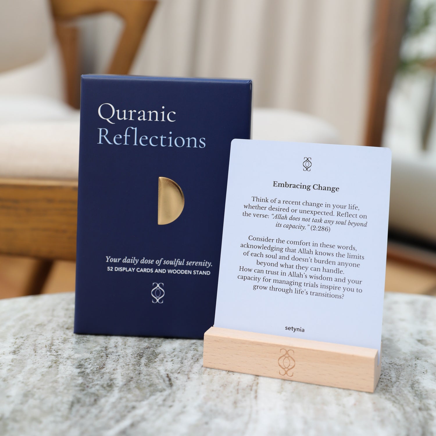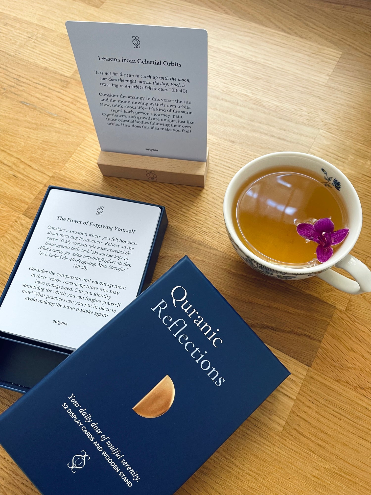 Dear Aliya, Thank you so much for your wonderful review and for being one of our first customers! We're thrilled to hear that the Quranic Affirmations have found a perfect spot on your minimalist desk setup and are bringing positivity to your mornings. We're so happy to hear you love the quality and neutral tones too—it’s something we worked hard on. Whenever you’re ready, the Quranic Reflections will be here waiting for you and are confident you'll love them too! As a token of our gratitude for your review, please email us to receive a 20% discount on your next order.